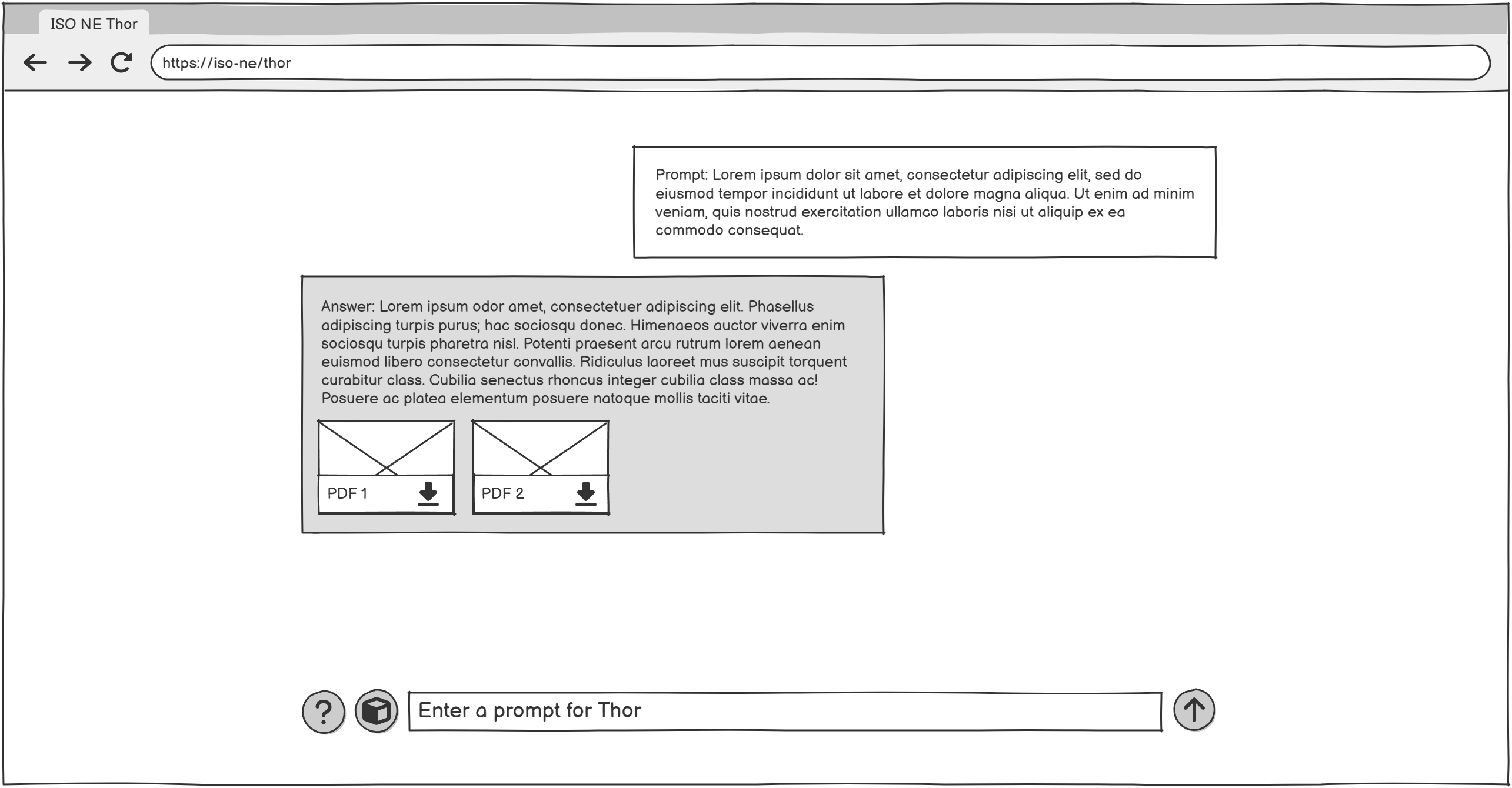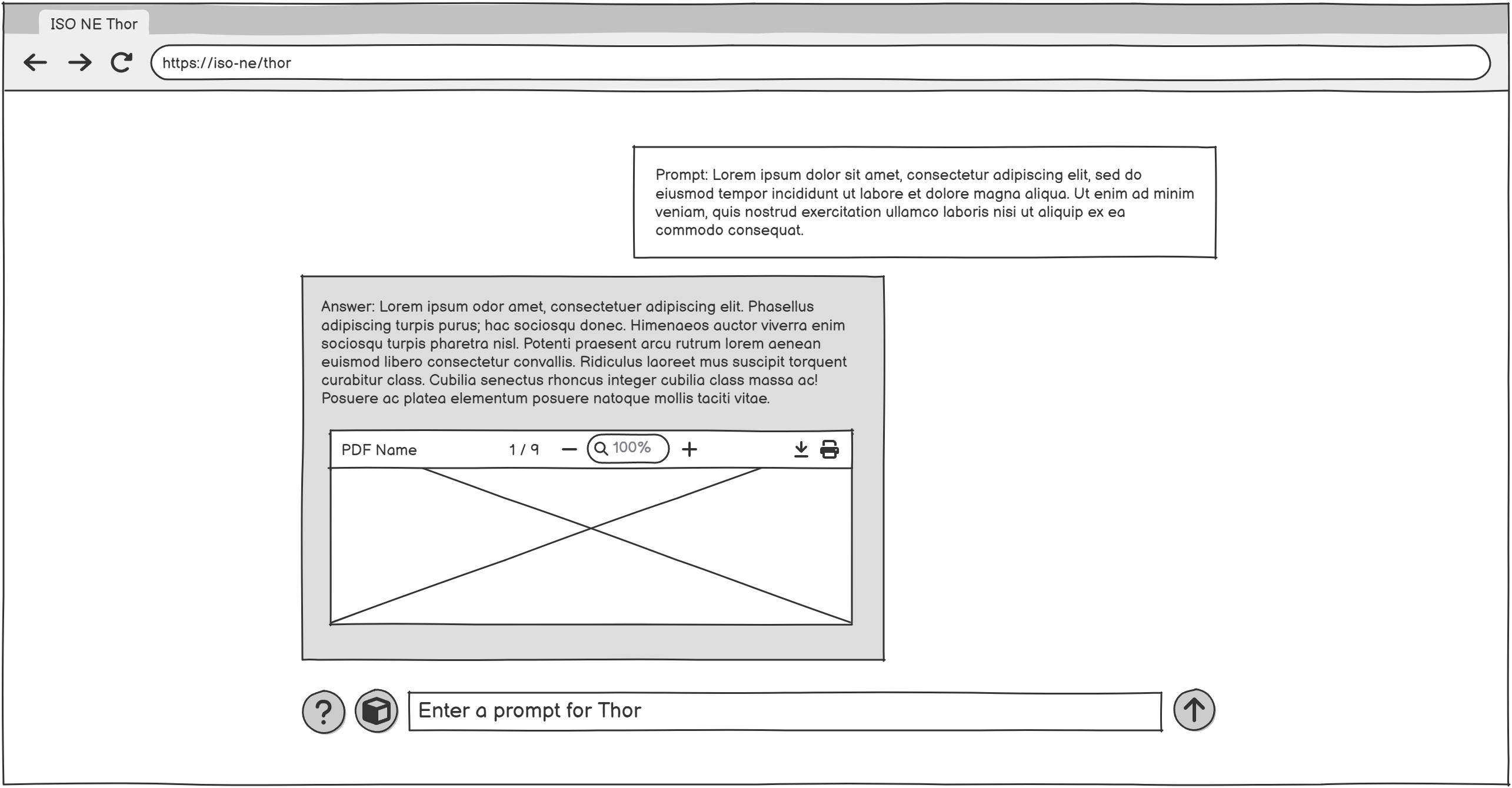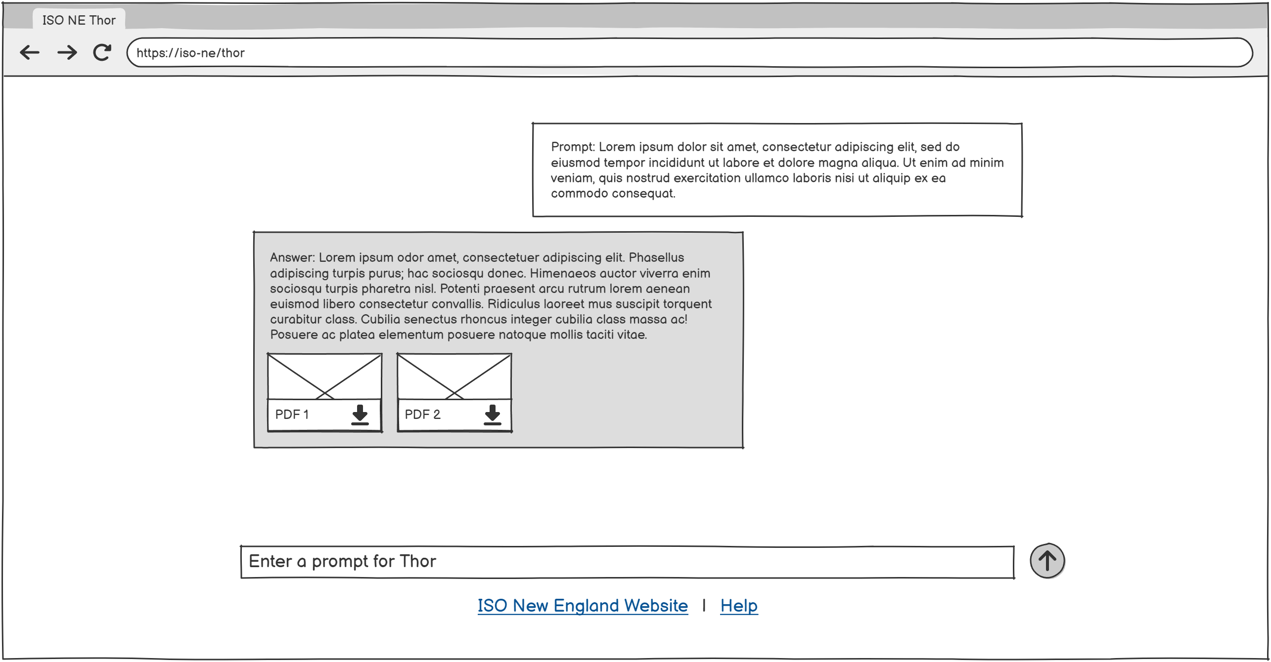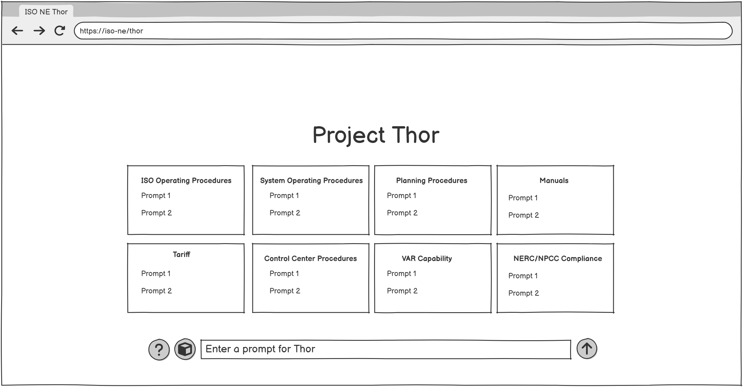 ThorGPT was my final group project for my CS-320: Software Engineering class. Our task was to build a RAG LLM for ISO New England, corporation that manages the electricity supply for New England. This LLM is to help users like ISO New England employees and contractors easily search for rules, procedures, and documents. I was responsible for building the frontend in React, designing the UI, updating documentation, and collaborating on the architecture for our project. However, this page will focus on the design process for developing the UI which I conducted independently.